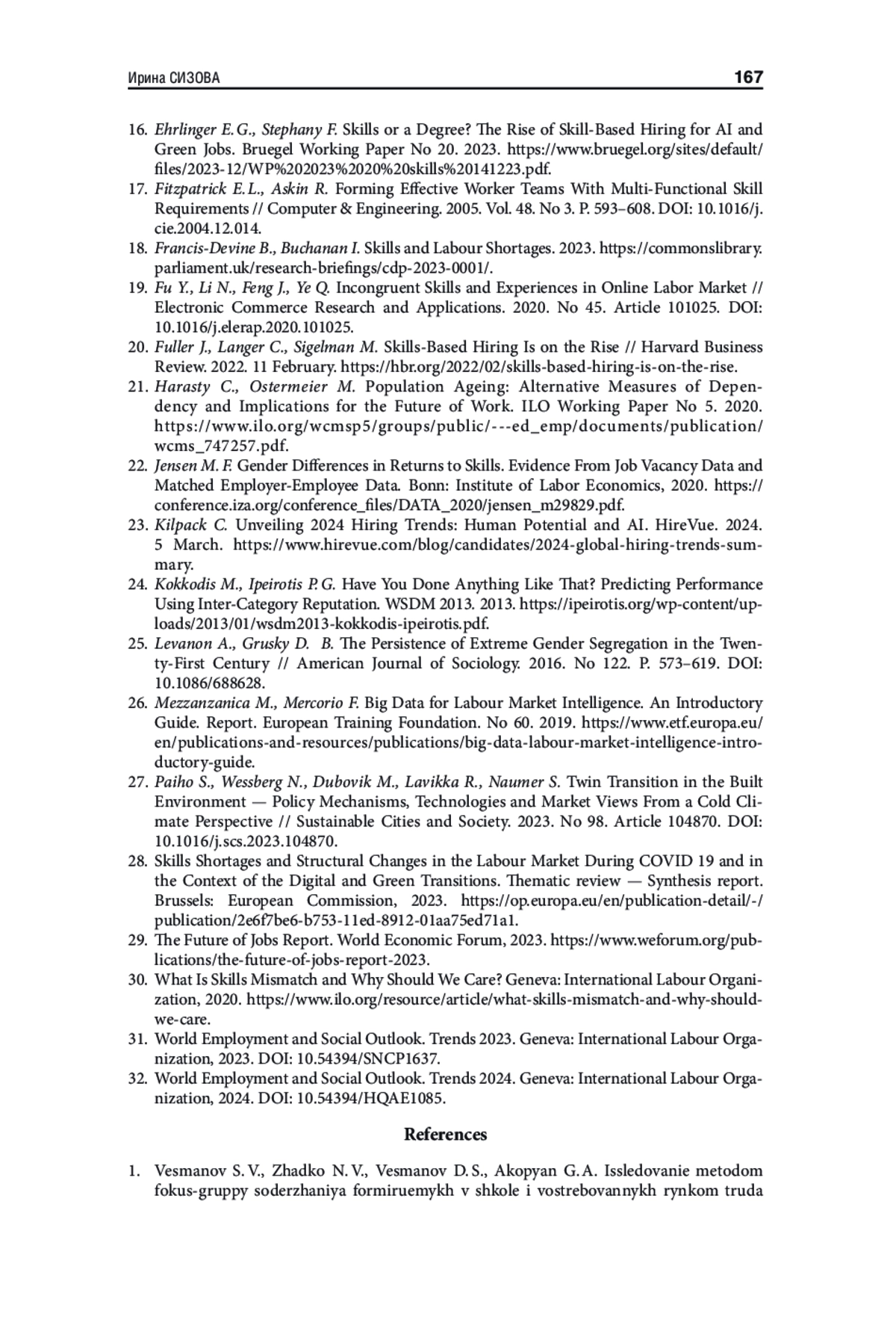 2. Волгин А. Д., Гимпельсон В. Е. Спрос на навыки: анализ на основе онлайн данных о вакансиях // Экономический журнал ВШЭ. 2022. Т. 26. № 3. С. 343-374. https://doi.org/10.17323/1813-8691-2022-26-3-343-374.