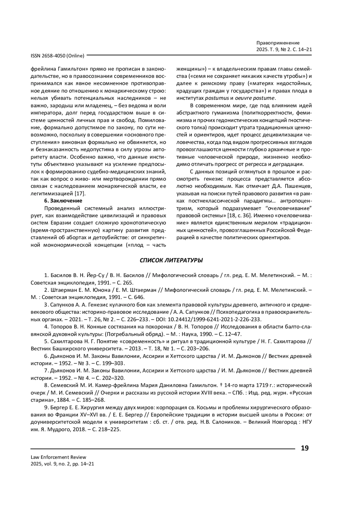 17. Малева Э. М. Создание кобно-медицинской экспертизы в России: Устав воинский (1716 г.) / Э. М. Малева // Сибирский юридический вестник. - 2022. - № 2 (97). - С. 3-8. -. DOI: 10.26516/2071-8136.2022.2.3 EDN: LPSOHN