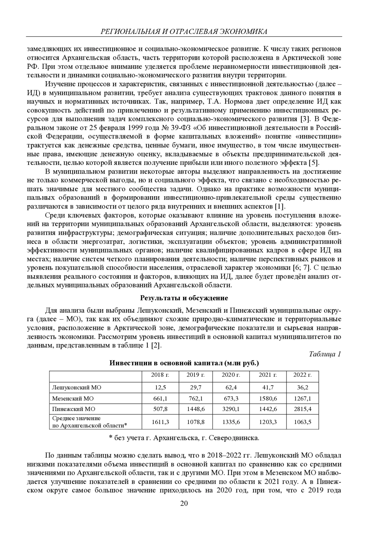 В статье проведен сравнительный анализ инвестиционного развития арктических территорий Архангельской области на примере трех муниципальных округов: Лешуконского, Пинежского и Мезенского. Авторами обоснованы и рассмотрены факторы инвестиционного развития, которые определяют специфику муниципальных округов и причины инвестиционной дифференциации территорий. На основе проведенного анализа предложены комплексные и адресные рекомендации, направленные на стимулирование инвестиционной деятельности