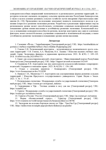 2. Гонова О.В. Региональный агротуризм - мультипликатор экономического роста сельских территорий / О.В. Гонова, А.А. Малыгин, В.А. Лукина // Известия высших учебных заведений. Серия: Экономика, финансы и управление производством. 2021. № 4(50). С. 109-119. DOI: 10.6060/ivecofin.20214504.573 EDN: XCCIVH