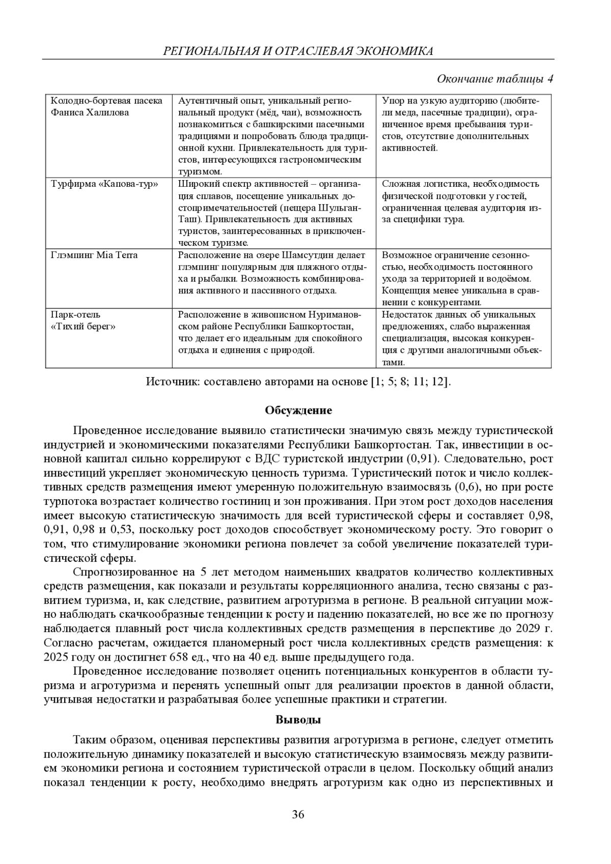 В статье проведен анализ влияния агротуризма на региональную конкурентоспособность. Полученные результаты свидетельствуют о наличии связи между туризмом и региональным экономическим развитием. Агротуризм как фактор повышения конкурентоспособности Республики Башкортостан, по мнению авторов, позволяет создавать уникальную форму туризма, диверсифицируя сельскохозяйственный сектор экономики региона
