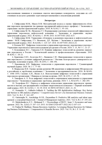 9. 	Тимофеев А. Е. Роль цифровых технологий в современном менеджменте и управлении персоналом // Экономика и управление: проблемы, решения. 2024. Т. 2, № 6(147). С. 282-293.  EDN: STUNKQ