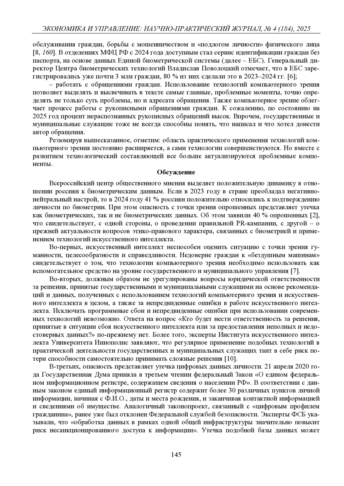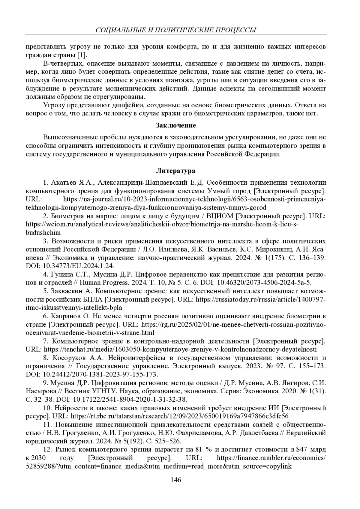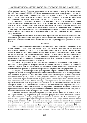 6. 	Капранов О. Не менее четверти россиян позитивно оценивают внедрение биометрии в стране [Электронный ресурс]. URL: https://rg.ru/2025/02/01/ne-menee-chetverti-rossiian-pozitivno-ocenivaiut-vnedenie-biometrii-v-strane.html.