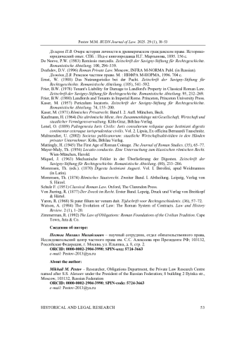 13. 	Kaser, M. (1957) Periculum locatoris. Zeitschrift der Savigny-Stiftung für Rechtsgeschichte. Romanistische Abteilung. 74, 155-200.