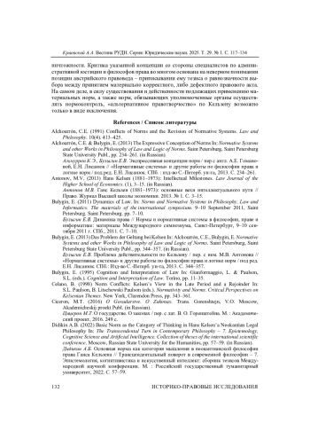27. Kraevsky, A.A. (2015) Hans Kelsen’s Pure Theory of Law and Modern Legal Positivism. Proceedings of Higher Educational Institutions. Pravovedenie. 2, pp. 88-125.