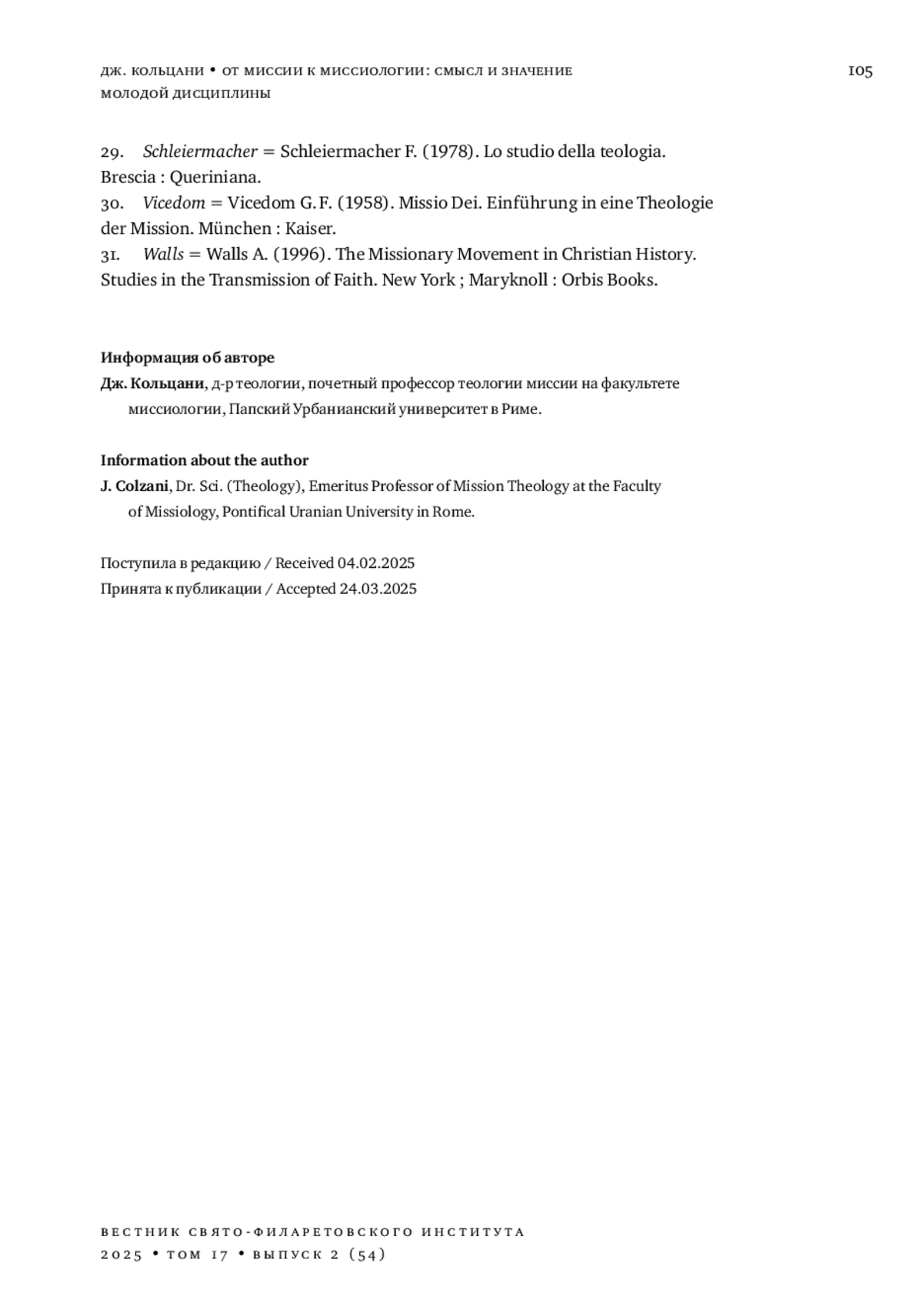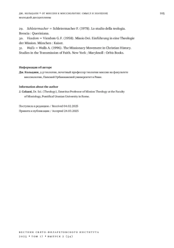 18. Bosch D. (2000). La trasformazione della missione. Mutamenti di paradigma in missiologia. Brescia: Queriniana. (Рус. пер.: Д. Бош. Преобразования миссионерства: Сдвиги парадигмы в богословии миссионерской деятельности. Санкт-Петербург: Библия для всех, 1997. 636 с.).