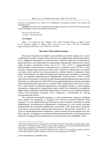 Поскольку тематика настоящего исследования достаточно непростая, то целесообразным, в первую очередь, будет обратиться к дефинициям: финансовая грамотность, цифровое гражданство и метавселенная. Пожалуй, наиболее устоявшимся из представленных категорий является определение финансовой грамотности, обсуждение которого насчитывает более чем 10 лет.