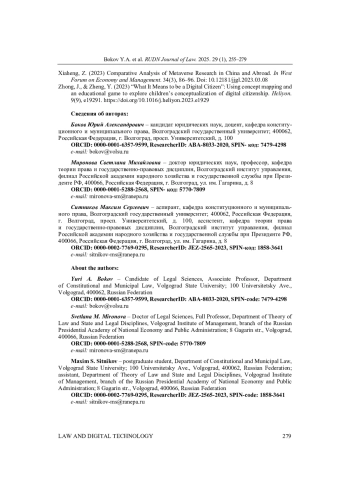 42. Sitnikov, M.S. (2024b) The Russian researches on Metaverses: a Scholar Review. Legal Issues in the Digital Age. 5(1) 98-121. DOI: 10.17323/2713-2749.2024.1.98.121 EDN: AFBABW