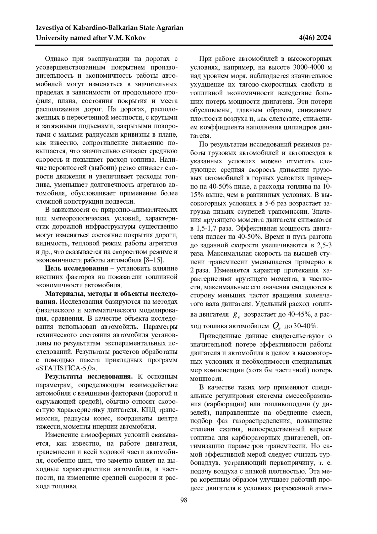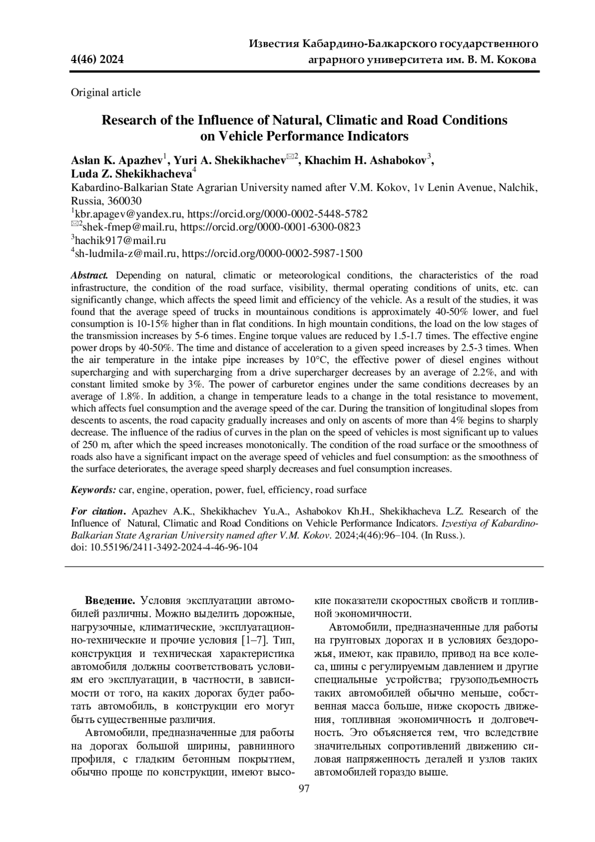 1. 	Койчев В. С., Батыров В. И., Болотоков А. Л. Режимные факторы и регулировочные параметры автомобильных двигателей при эксплуатации в условиях Кабардино-Балкарской Республики // Известия Кабардино-Балкарского государственного аграрного университета им. В. М. Кокова. 2022. № 2(36). С. 91-100. DOI: 10.55196/2411-3492-2022-2-36-91-100 EDN: FGJYAC