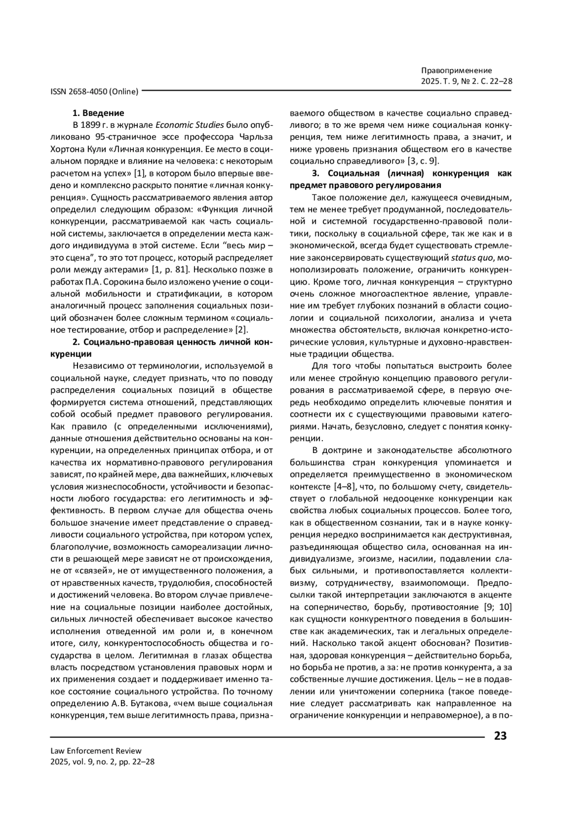 3. Бутаков А. В. От социального противоречия к социальной конкуренции - базовому правовому режиму (способу) жизнедеятельности государства (Часть II) / А. В. Бутаков // Правоприменение. - 2023. - Т. 7, № 4. - С. 5-14. - https://doi.org/10.52468/2542-1514.2023.7(4).5-14.