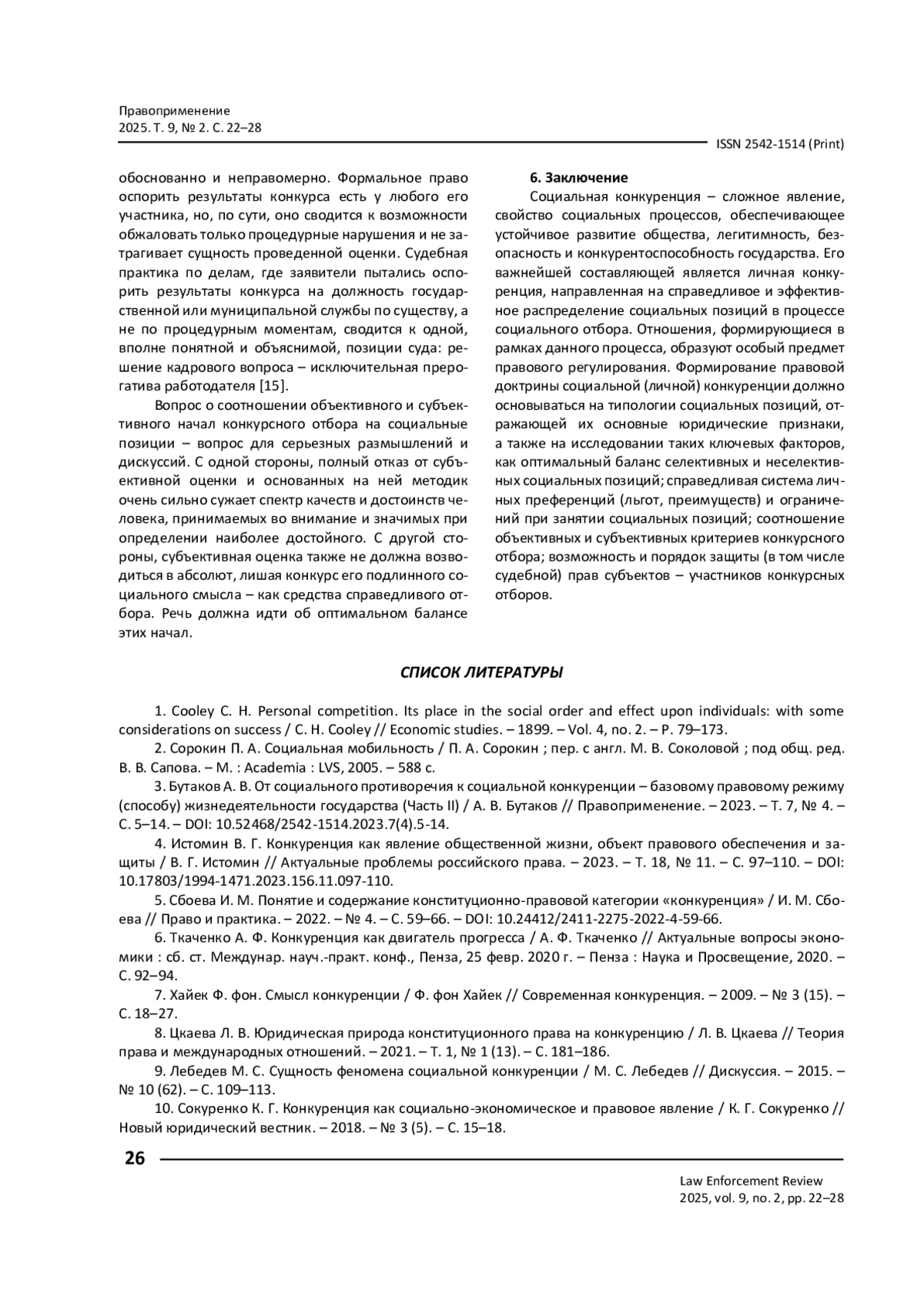 5. Сбоева И. М. Понятие и содержание конституционно-правовой категории «конкуренция» / И. М. Сбоева // Право и практика. - 2022. - № 4. - С. 59-66. - https://doi.org/10.24412/2411-2275-2022-4-59-66.
