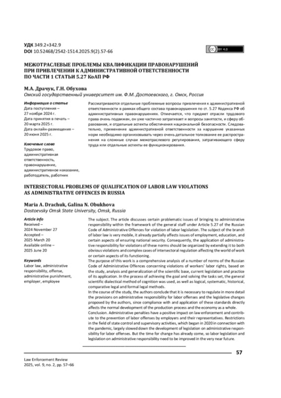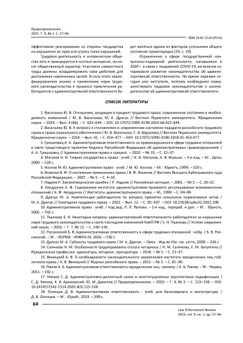 3. Гришковец А. А. Административная ответственность за правонарушения в сфере трудовых отношений в свете предстоящего принятия Кодекса Российской Федерации об административных правонарушениях / А. А. Гришковец // Административное право и процесс. - 2020. - № 10. - С. 32-37.