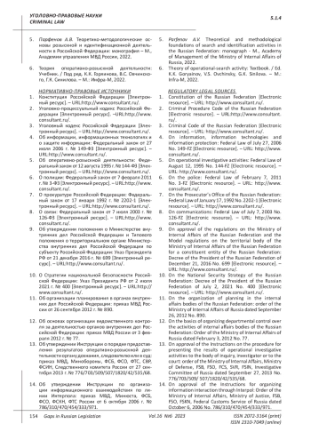12. 	Об оперативно-розыскной деятельности: Федеральный закон от 12 августа 1995 г. № 144-ФЗ [Электронный ресурс]. - URL: http://www.consultant.ru/.