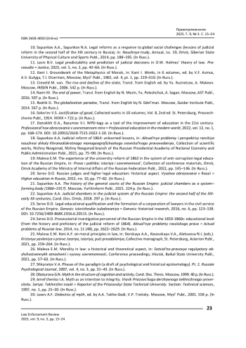 23. Серов Д. О. Правовой образовательный ценз и формирование корпорации юристов на государственной службе Российской империи / Д. О. Серов // Genesis: исторические исследования. - 2016. - № 6. - С. 123-138. - https://doi.org/10.7256/2409-868X.2016.6.20515.