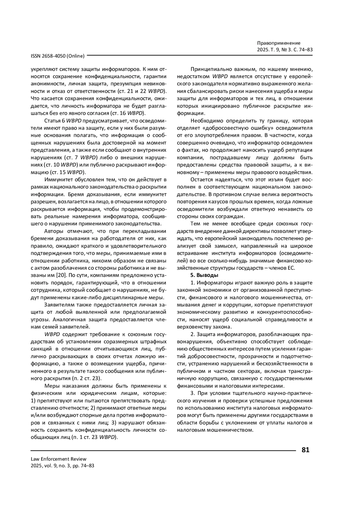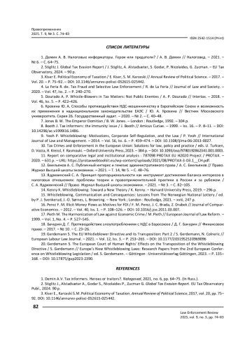 5. Dourado А. Р. Whistle-Blowers in Tax Matters: Not Public Enemies / А. Р. Dourado // Intertax. - 2018. - Vol. 46, Iss. 5. - P. 422-426.