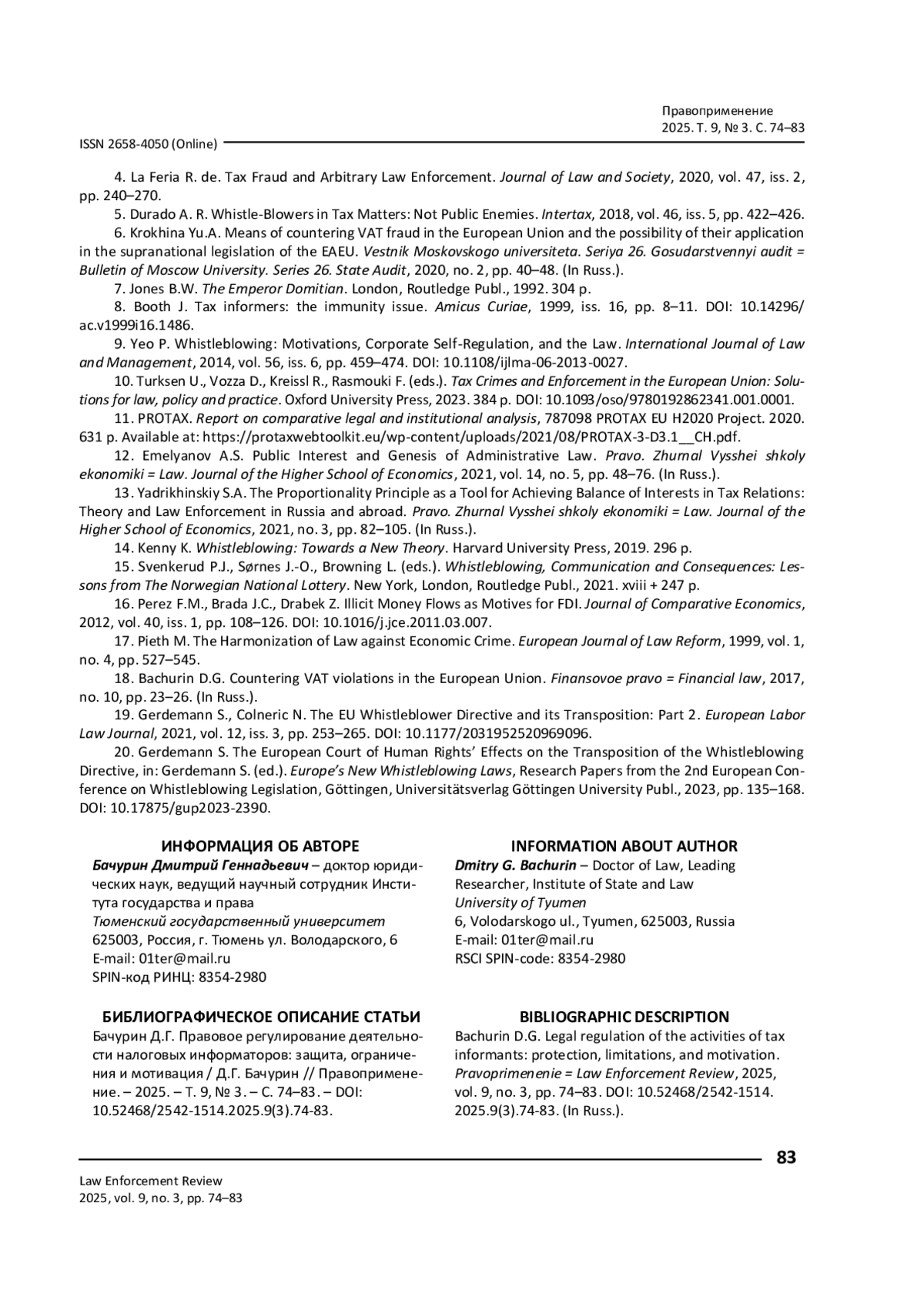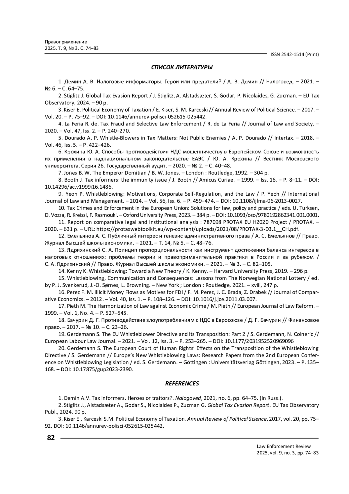 1. Демин А. В. Налоговые информаторы. Герои или предатели? / А. В. Демин // Налоговед. - 2021. - № 6. - С. 64-75.