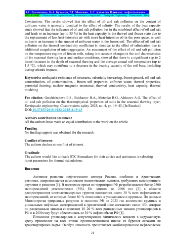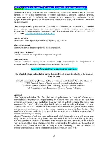30. Алексеев А.Г., Гречищева Э.С., Вшивцева Т.В. Современные методы лабораторных исследований свойств мерзлых грунтов // Фундаменты. 2021. № 4. С. 16-18.