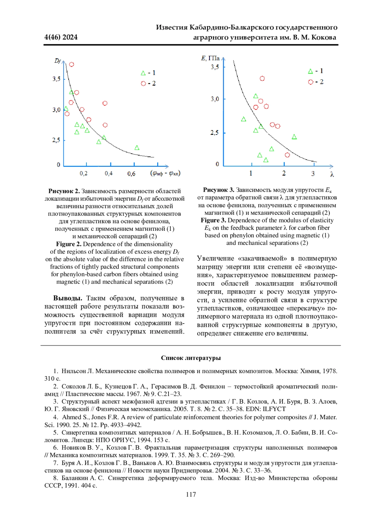 6. 	Новиков В. У., Козлов Г. В. Фрактальная параметризация структуры наполненных полимеров // Механика композитных материалов. 1999. Т. 35. № 3. С. 269-290.