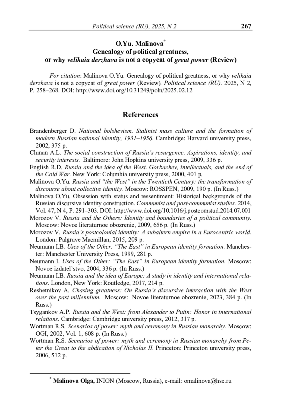Рец. на кн.: Решетников А. Погоня за величием: тысячелетний диалог России с Западом / А. Решетников; пер. с англ. Ю. Игнатьевой. – М.: Новое литературное обозрение, 2024. – 384 с.