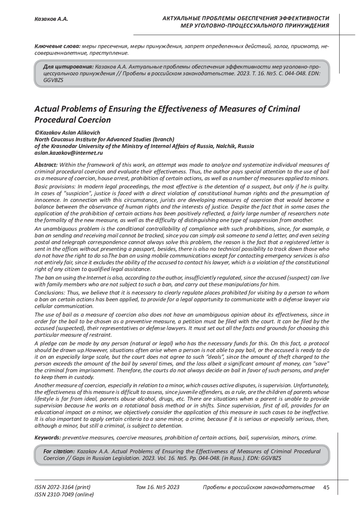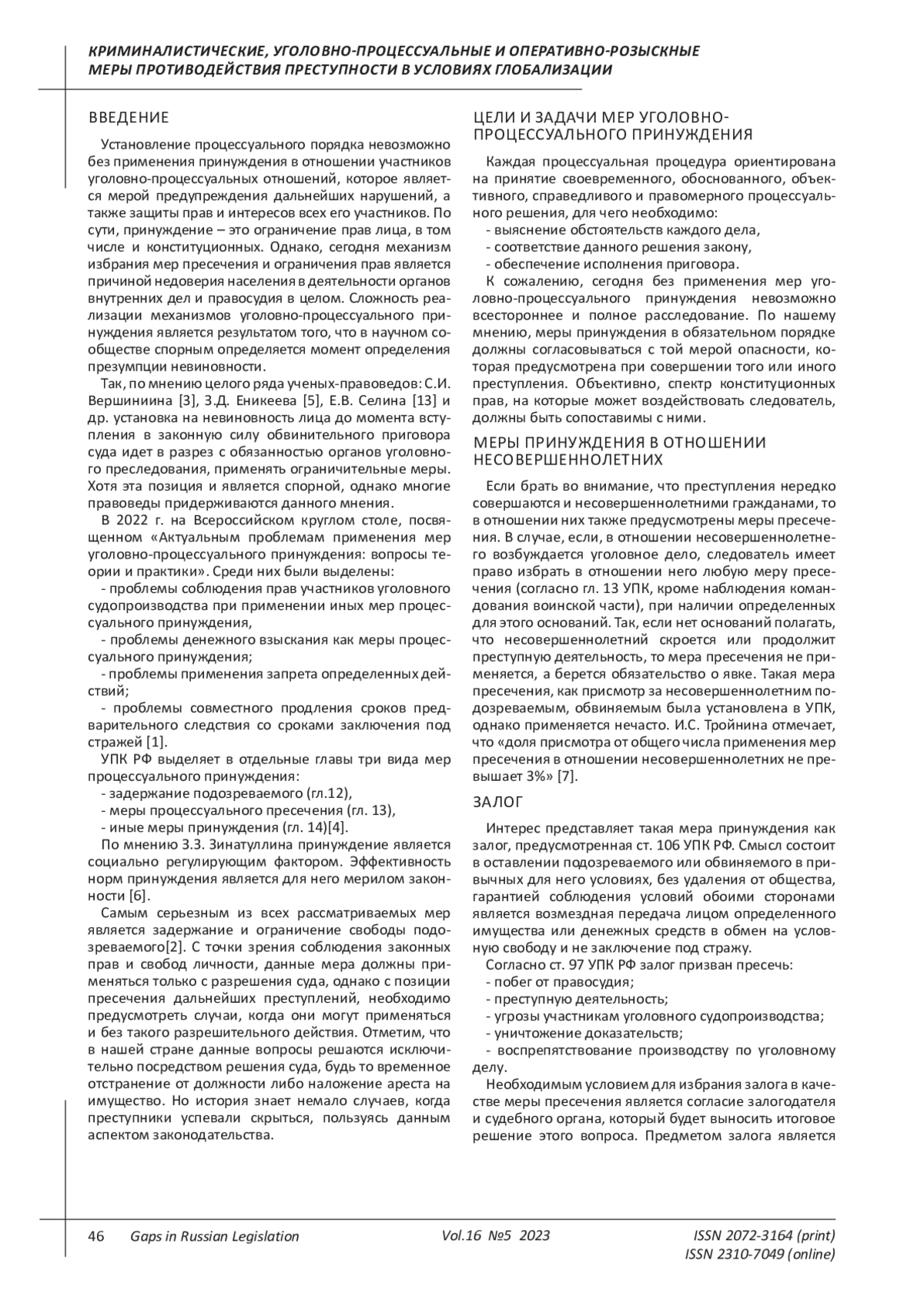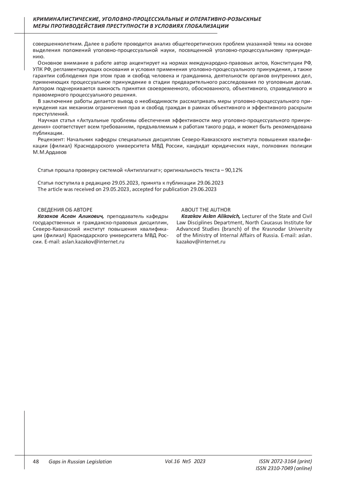 Actual problems of application of measures of criminal procedural coercion. URL: https://ub.rgup.ru/news/aktualnye-problemy-primeneniya-mer-ugolovno-processualnogo-prinuzhdeniya (accessed 20.04.2023).