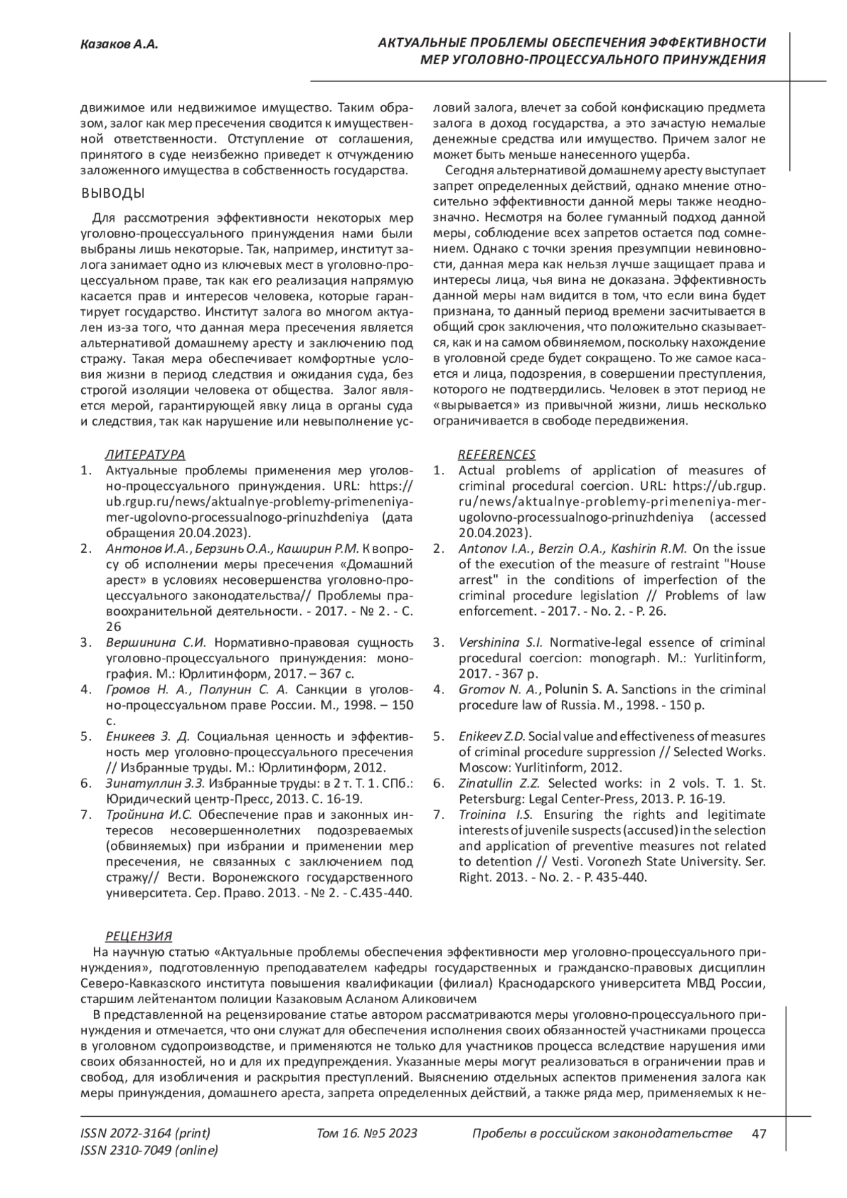 5. 	Еникеев З. Д. Социальная ценность и эффективность мер уголовно-процессуального пресечения // Избранные труды. М.: Юрлитинформ, 2012.