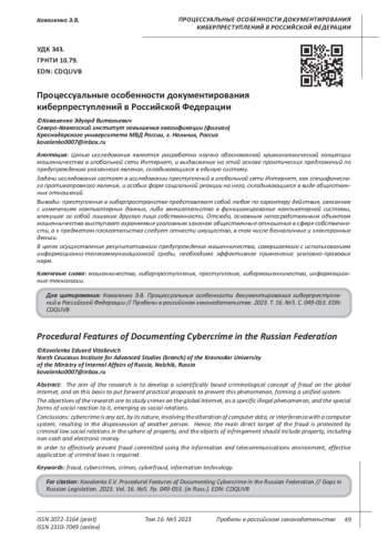 Shuruhnov N. G., Drozdova I. Yu. Interaction between a criminal and a victim in modern types of fraud // Domestic jurisprudence. 2019. No. 5 (37). pp. 32-35. EDN: FLTCIM