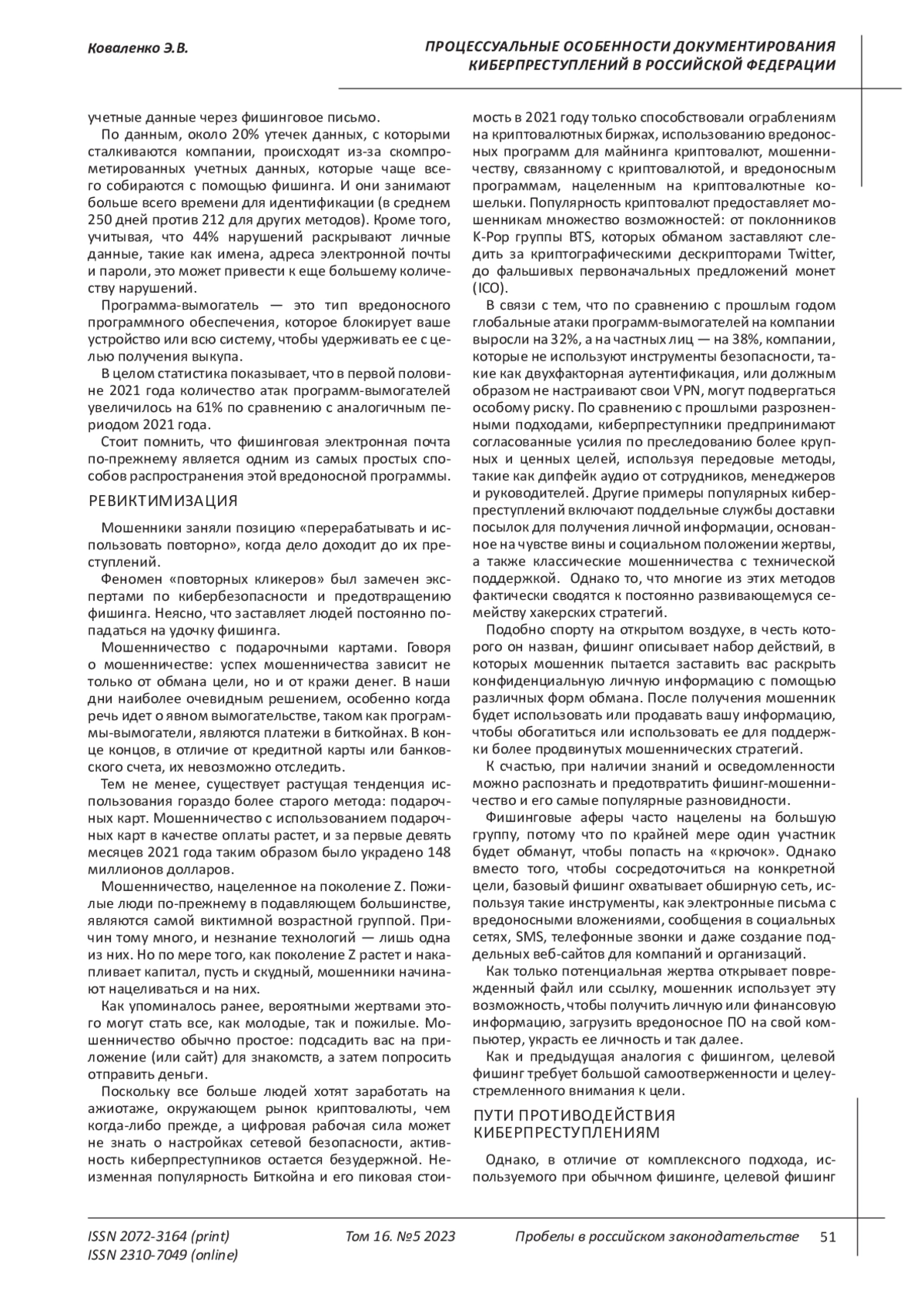 6. 	Майоров А. В., Яременко Н. Е. Виктимологический аспект мошенничества // Виктимология. 2019. № 3 (21). С. 36-41. EDN: PEXNYL