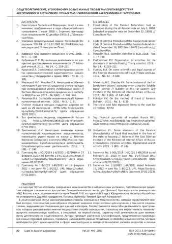 7. Рокотов В.К. О способе мошенничества// Криминалистический вестник. - 2016. - № 3. - С. 31.