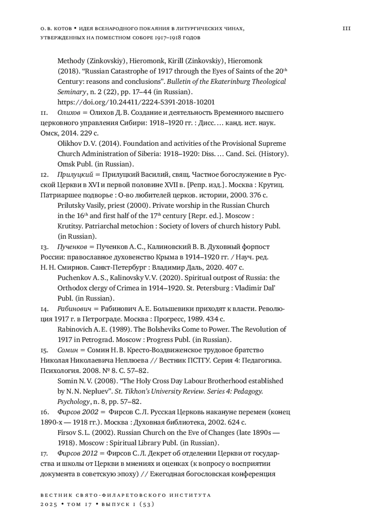 50. 	Мефодий (Зинковский), иером., Кирилл (Зинковский), иером. Русская катастрофа 1917 г. очами святых XX века: причины и уроки // Вестник Екатеринбургской духовной семинарии. 2018. № 2 (22). С. 17-44. DOI: 10.24411/2224-5391-2018-10201 EDN: XRYZBZ