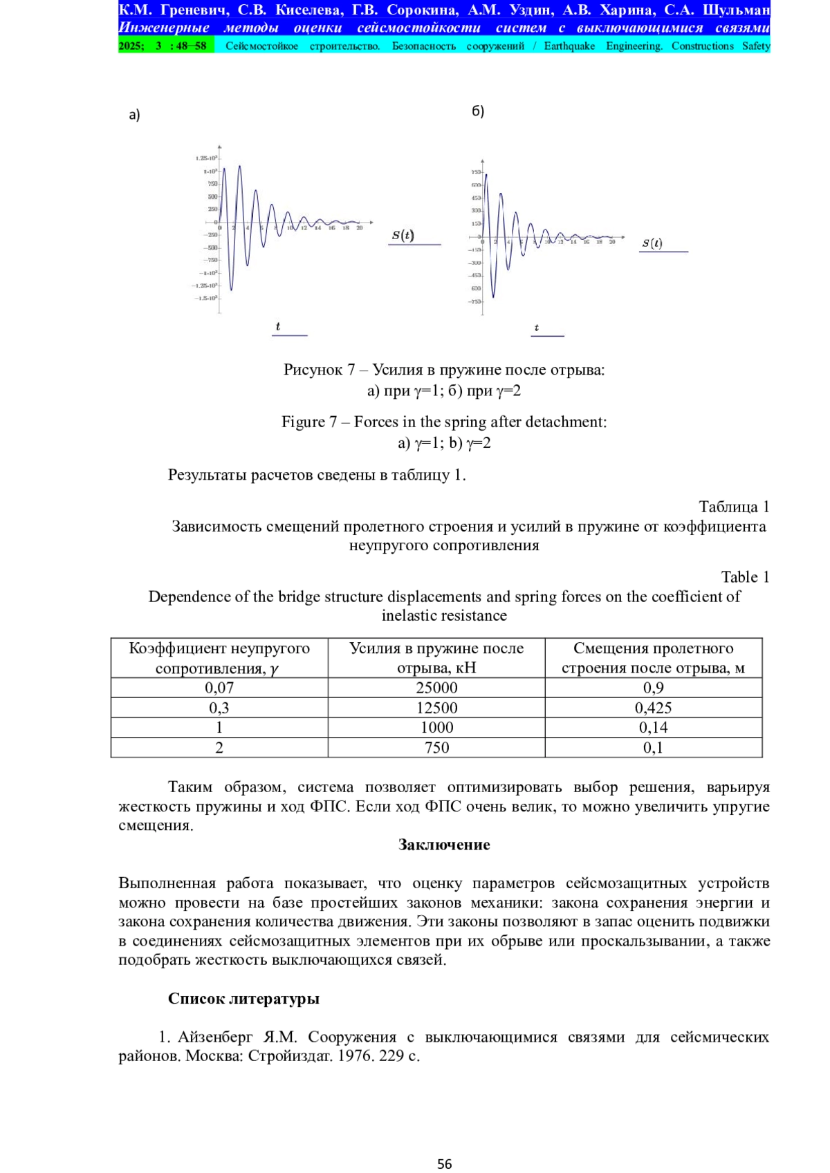1. Айзенберг Я.М. Сооружения с выключающимися связями для сейсмических районов. Москва: Стройиздат. 1976. 229 с.