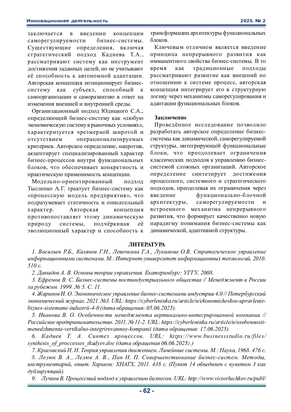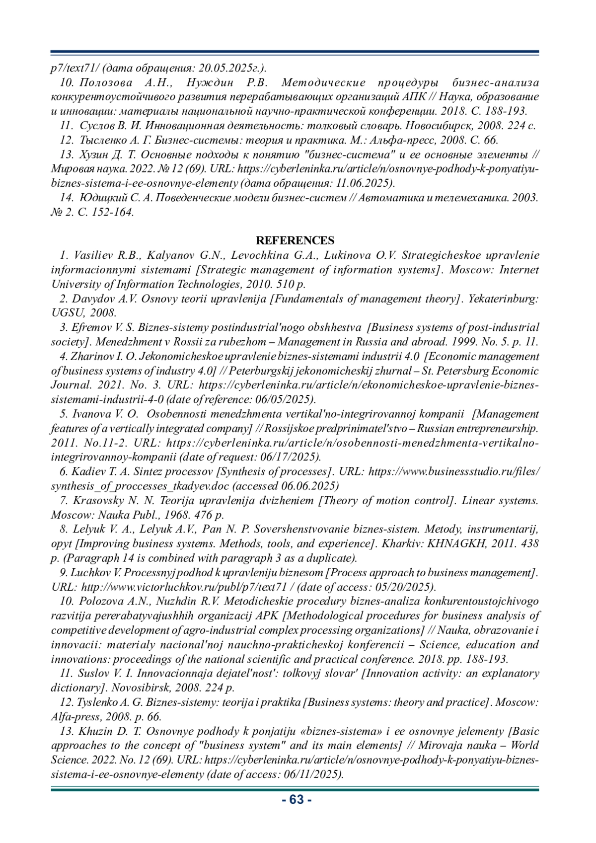 13. 	Хузин Д. Т. Основные подходы к понятию “бизнес-система” и ее основные элементы // Мировая наука. 2022. № 12 (69). URL: https://cyberleninka.ru/article/n/osnovnye-podhody-k-ponyatiyu-biznes-sistema-i-ee-osnovnye-elementy (дата обращения: 11.06.2025). EDN: AAHJMO