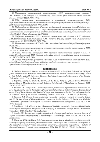 6. 	Амелин С.В. Современные аспекты организации цифрового производства // Экономинфо. 2024. Т. 19. № 2. С. 5.16.