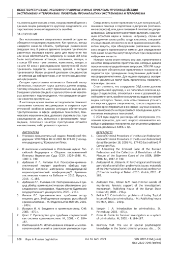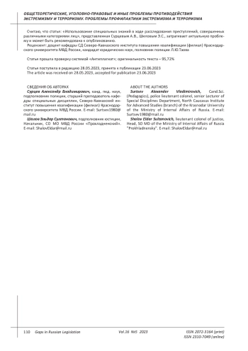 Exarhopulo A.A. Fundamentals of forensic theory. St. Petersburg, 1992. - Article 116, 280 of the Code of Criminal Procedure of the Russian Federation: Feder. Law No. 38-FZ dated March 6, 2022 (last edition). // Consultant Plus.