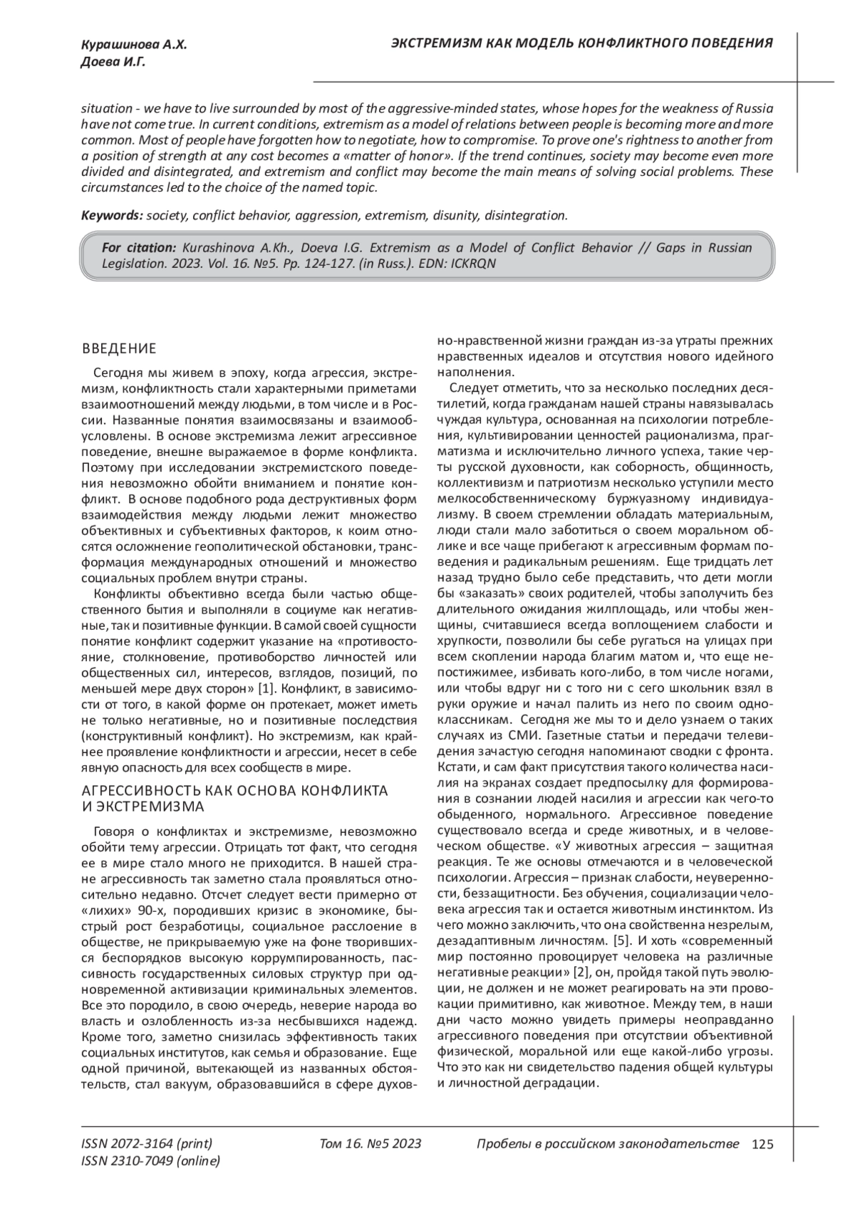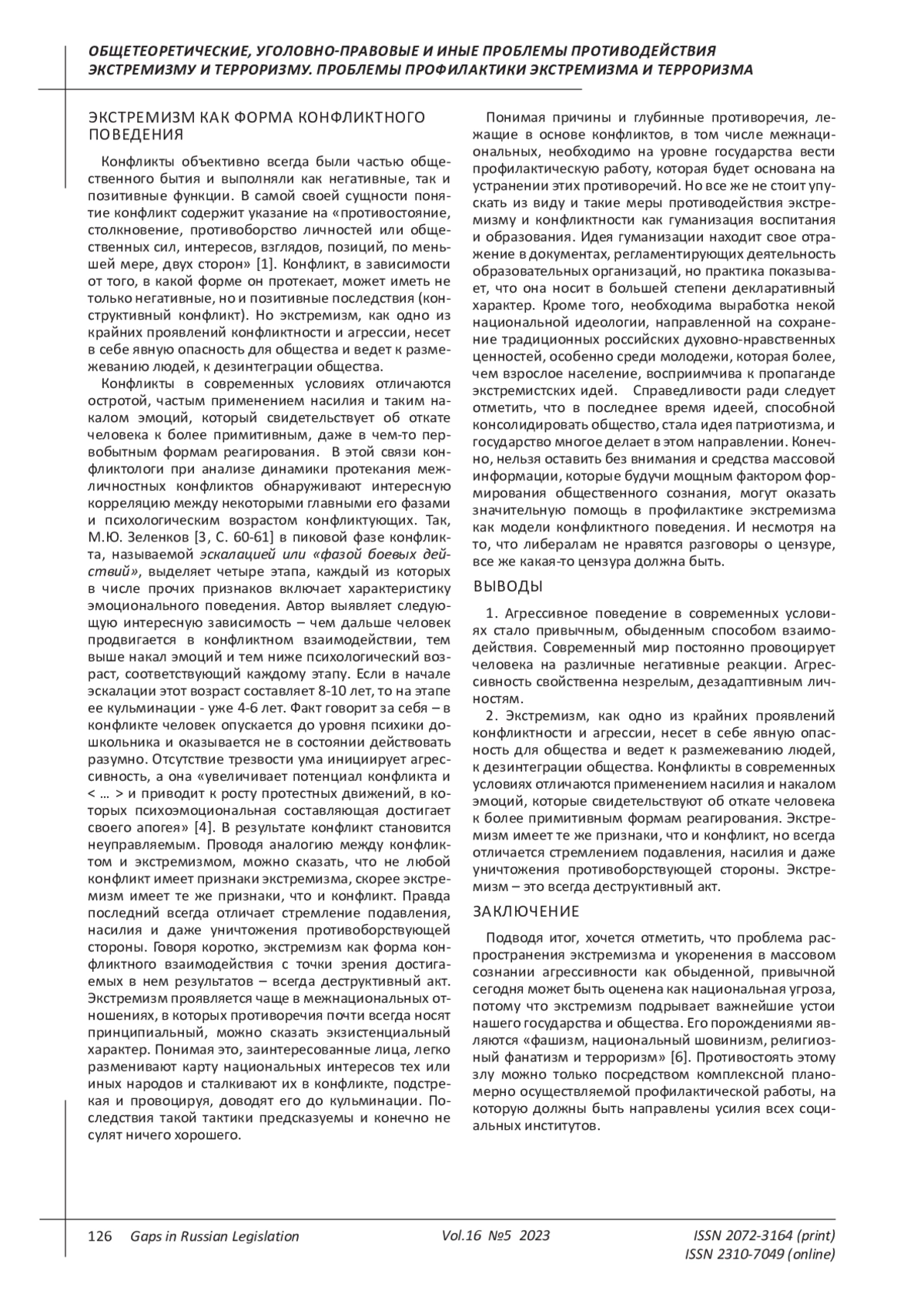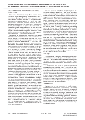 Конфликты объективно всегда были частью общественного бытия и выполняли как негативные, так и позитивные функции. В самой своей сущности понятие конфликт содержит указание на «противостояние, столкновение, противоборство личностей или общественных сил, интересов, взглядов, позиций, по меньшей мере, двух сторон» [1]. Конфликт, в зависимости от того, в какой форме он протекает, может иметь не только негативные, но и позитивные последствия (конструктивный конфликт). Но экстремизм, как одно из крайних проявлений конфликтности и агрессии, несет в себе явную опасность для общества и ведет к размежеванию людей, к дезинтеграции общества.