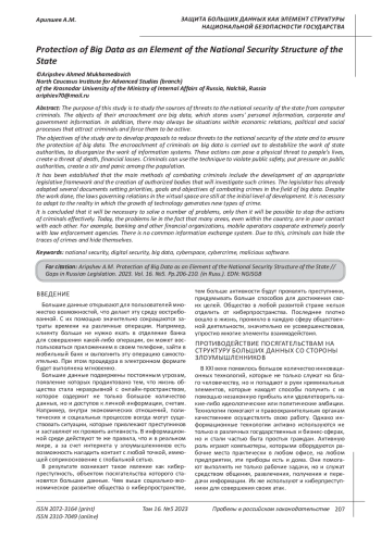 3. 	Бурхавецкий И.А., Долгачев Н.О., Решаев М.А. Защита личной информации в эпоху больших данных // Финансовая экономика. 2023. № 1. С. 11-13. EDN: CGCYST