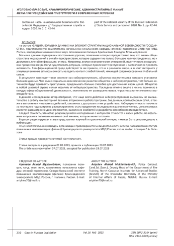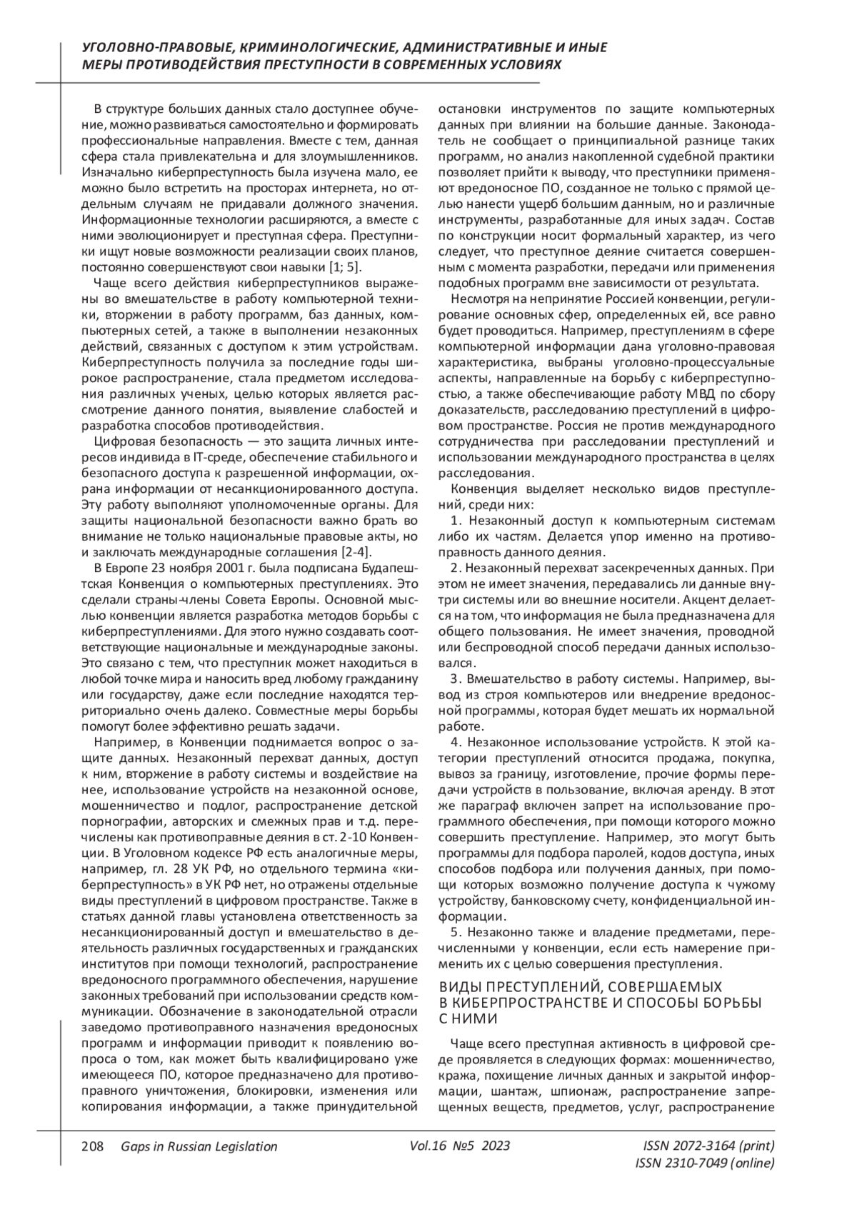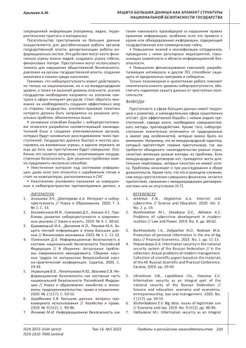 2. 	Бесхмельнов М.И., Симакова Д.Е., Ахонин А.С. Проблемы развития киберпреступности в современных реалиях // Закон и власть. 2019. № 4. С. 60-62. EDN: XTCCOS