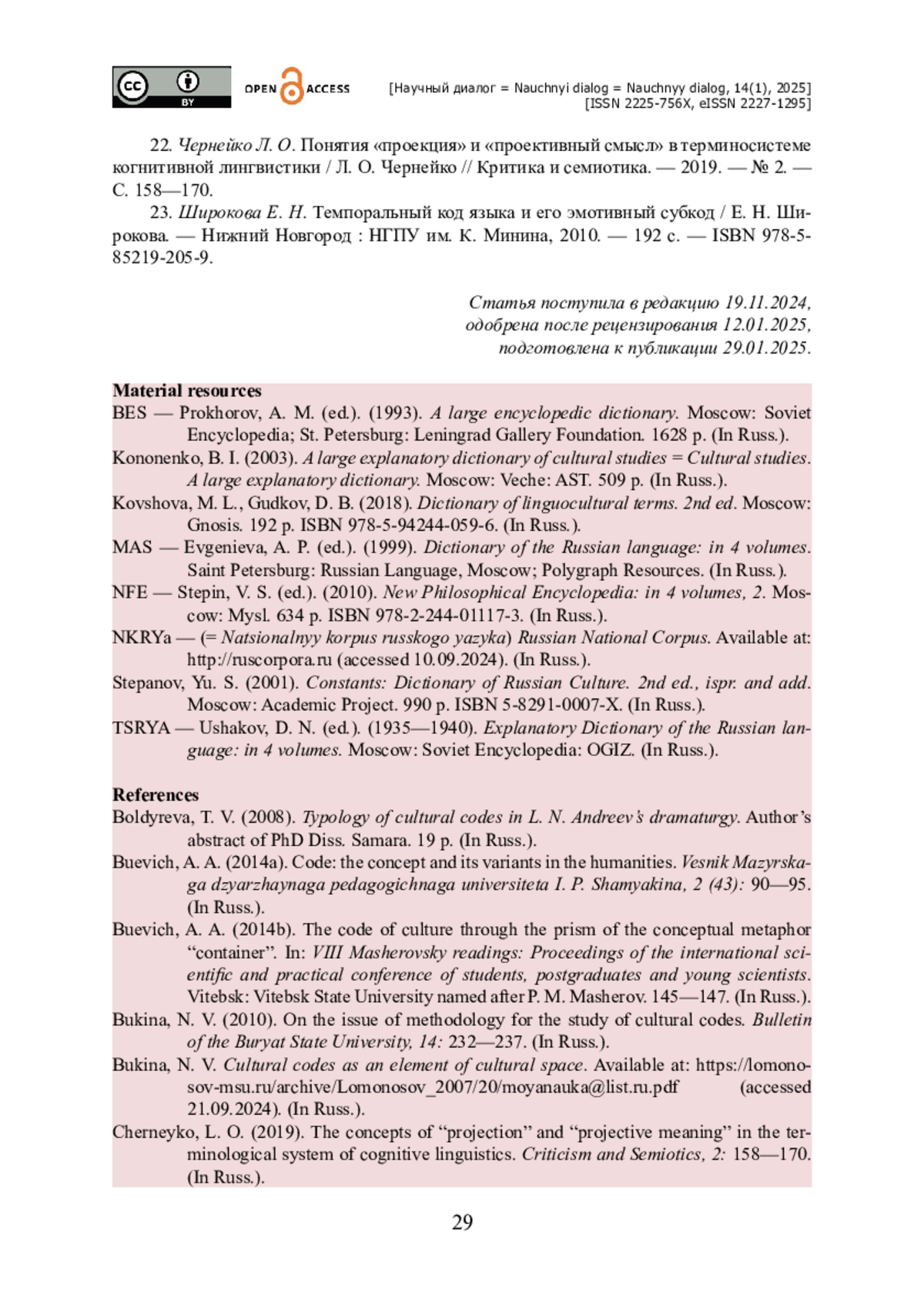 27. Савицкий В. М. Культурные и лингвокультурные коды : теоретический обзор / В. М. Савицкий, Е. В. Черкасова // Филологические науки. Вопросы теории и практики. Philology. Theory & Practice. - 2023. - Т. 16. - Выпуск 12. - С. 4351-4358. - https://doi.org/10.30853/phil20230660.