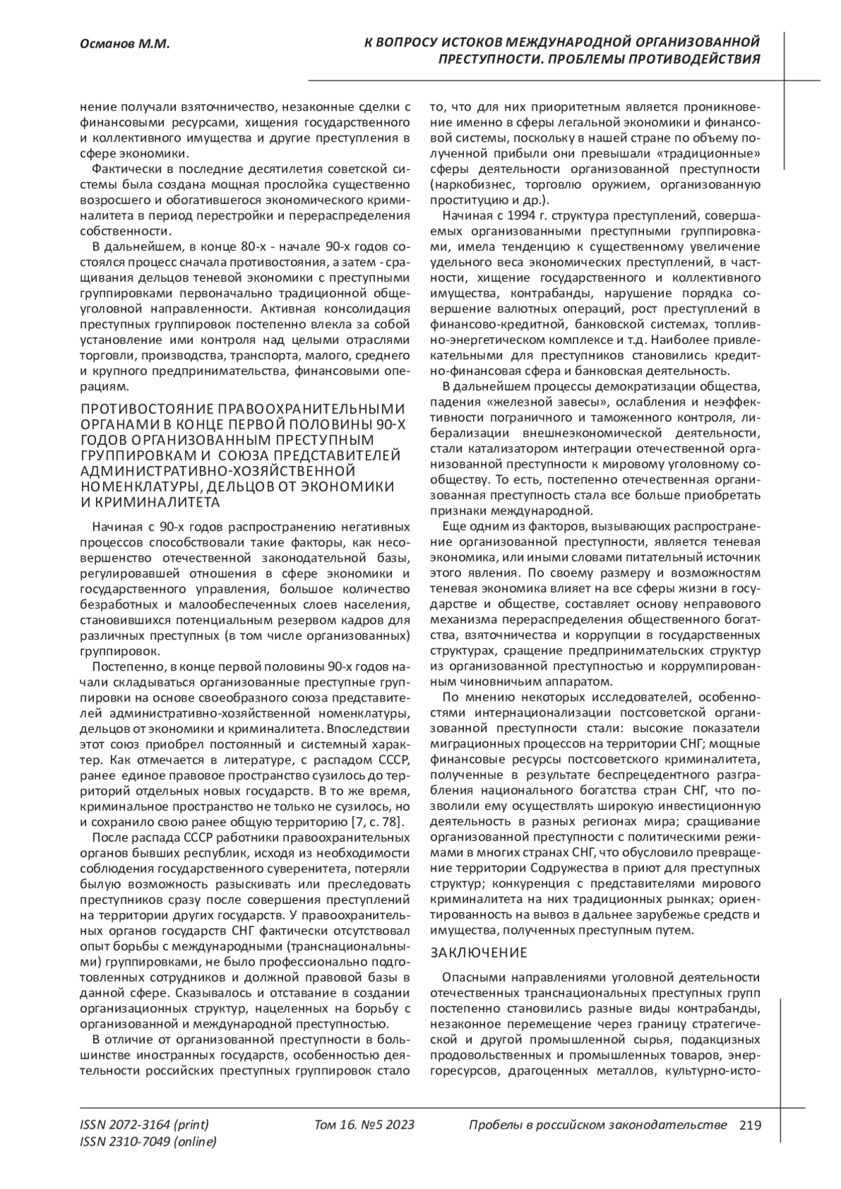 Fundamentals of the fight against organized crime: monograph / ed. Ovchinsky, V. E. Eminov, N. P. Yablokov. M.: INFRA-M, 1996. 400 p.