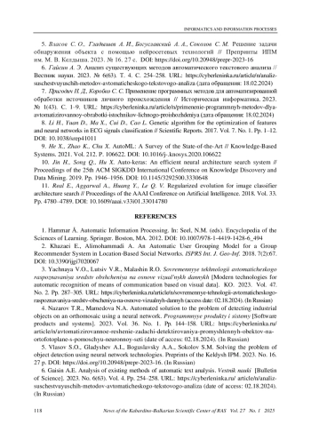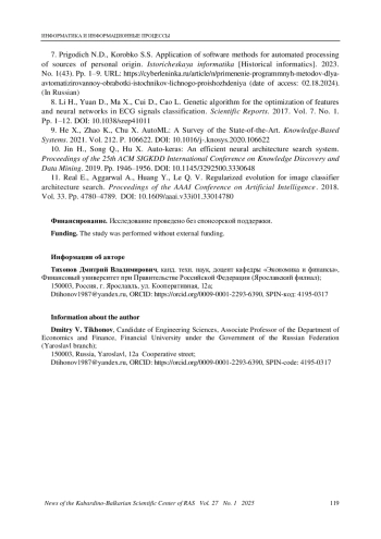 10. 	Jin H., Song Q., Hu X. Auto-keras: An efficient neural architecture search system // Proceedings of the 25th ACM SIGKDD International Conference on Knowledge Discovery and Data Mining. 2019. Pp. 1946-1956. DOI: 10.1145/3292500.3330648