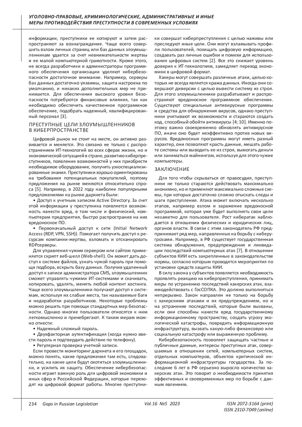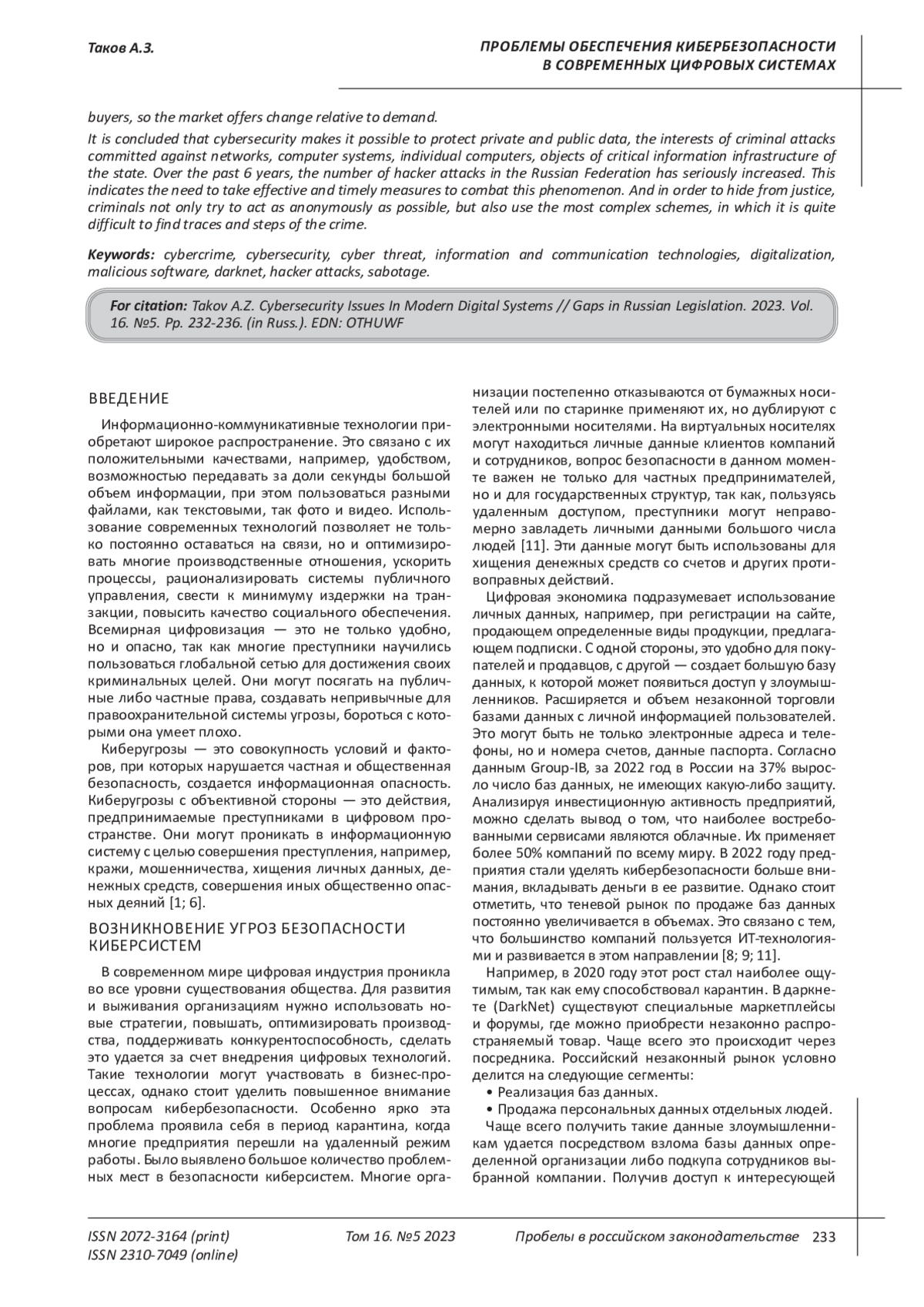6. 	Кириленко В.П., Алексеев Г.В. Киберпреступность и цифровая трансформация // Теоретическая и прикладная юриспруденция. 2021. № 1. С. 39-53. EDN: UDZCMU
