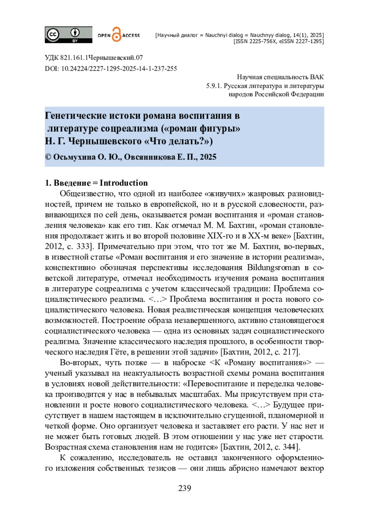 17. Осьмухина О. Ю. Особенности репрезентации жанровой традиции романа воспитания в русской прозе конца 1920-х годов / О. Ю. Осьмухина, Е. П. Овсянникова // Филологические науки. Вопросы теории и практики. Philology. Theory & Practice. - 2024. - Т. 17. - Выпуск 6. - С. 2079-2085.