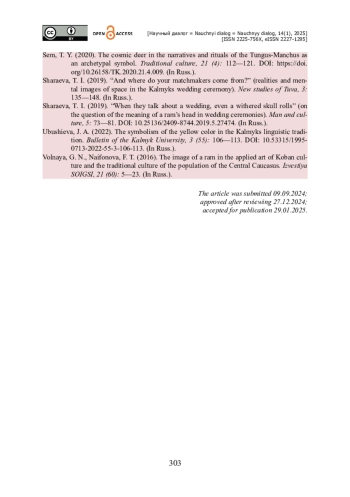 28. Сем Т. Ю. Космический олень в нарративах и ритуалах тунгусо-маньчжуров как архетипический символ / Т. Ю. Сем // Традиционная культура. - 2020. - Т. 21. - № 4. - С. 112-121. - https://doi.org/10.26158/TK.2020.21.4.009.