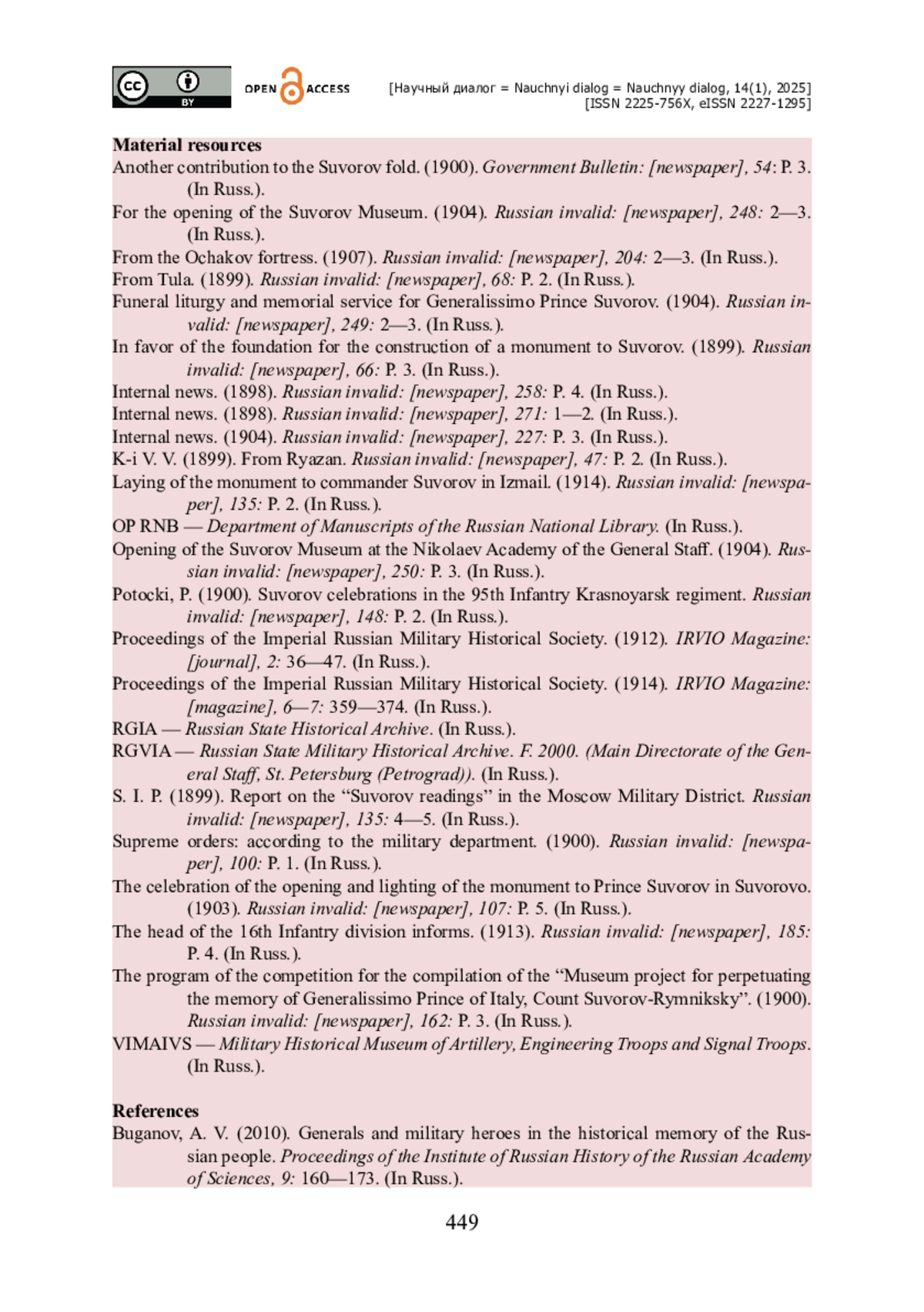 25. Буганов А. В. Полководцы и военные герои в исторической памяти русского народа / А. В. Буганов // Труды института российской истории РАН. - 2010. - № 9. - С. 160-173.