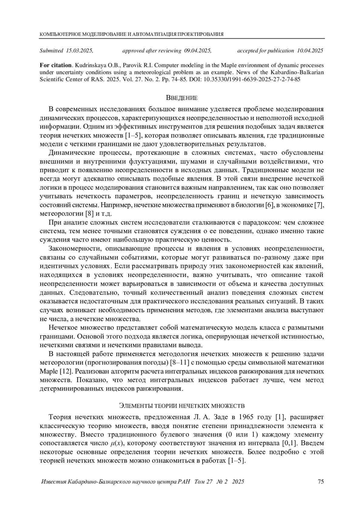В современных исследованиях большое внимание уделяется проблеме моделирования динамических процессов, характеризующихся неопределенностью и неполнотой исходной информации.