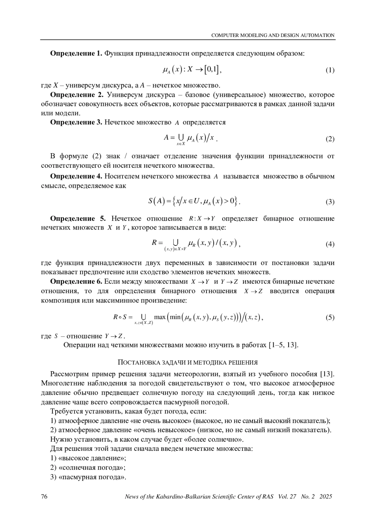 9. Gómez V., Casanovas A. Fuzzy logic and meteorological variables: a case study of solar irradiance. Fuzzy Sets and Systems. 2002. Vol. 126. No. 1. Pp. 121-128. EDN: ATTJKH