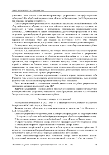 Статья: ВЛИЯНИЕ РАЗЛИЧНЫХ ПРИЕМОВ ВОЗДЕЙСТВИЯ НА ПОБЕГИ ГОЛУБИКИ ВЫСОКОРОСЛОЙ ПРИ РАЗМНОЖЕНИИ ОТВОДКАМИ (2025)