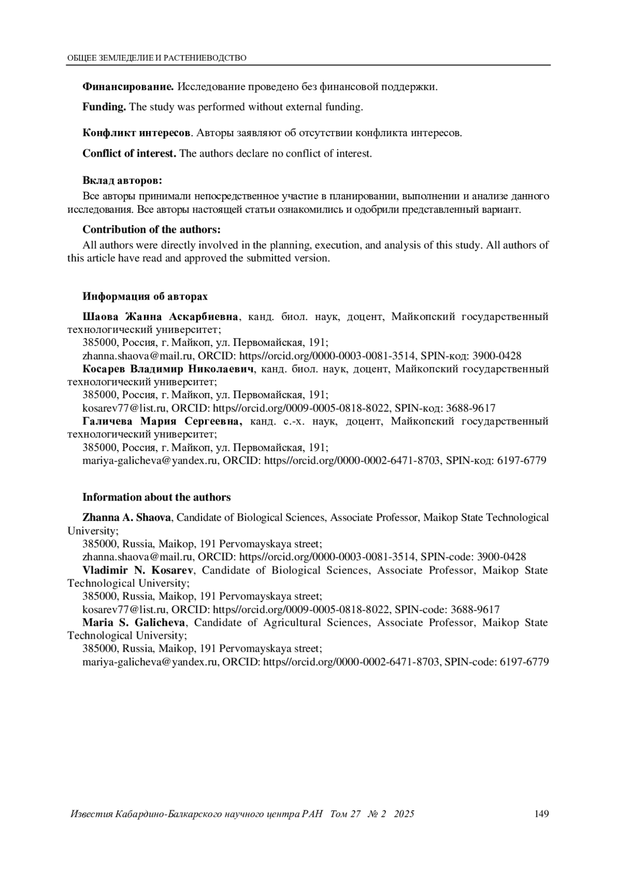 8. 	Nikolaichenko N., Strizhkov N., Azizov Z. et al. The impact of progressive cultivation technology on the productivity of coriander on chernozems of the Lower Volga region // BIO Web of Conferences. 2021. No. 37. P. 00141. DOI: 10.1051/bioconf/20213700141 EDN: CTCJDX