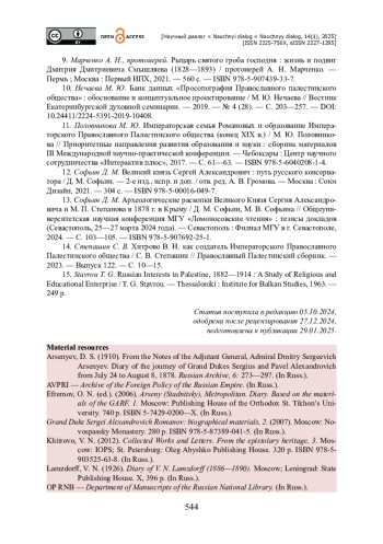 28. Степашин С. В. Хитрово В. Н. как создатель Императорского Православного Палестинского общества / С. В. Степашин // Православный Палестинский сборник. - 2023. - Выпуск 122. - С. 10-15.