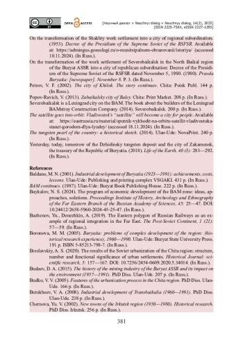 Ключевые фразы: СОЦИАЛИСТИЧЕСКАЯ МОДЕРНИЗАЦИЯ, индустриальное развитие, новые и молодые города, Забайкалье, градообразующий сектор, диверсификация экономики