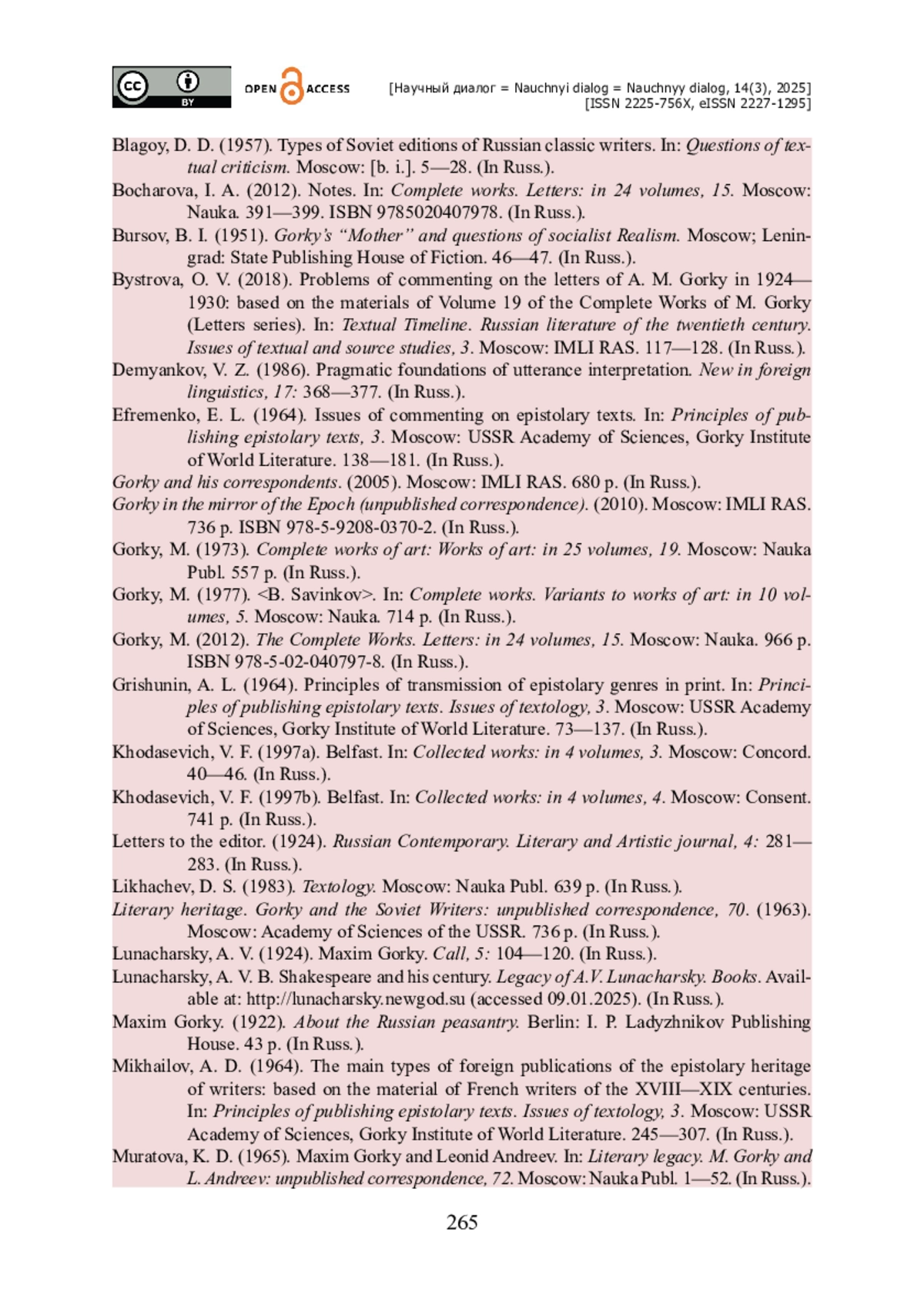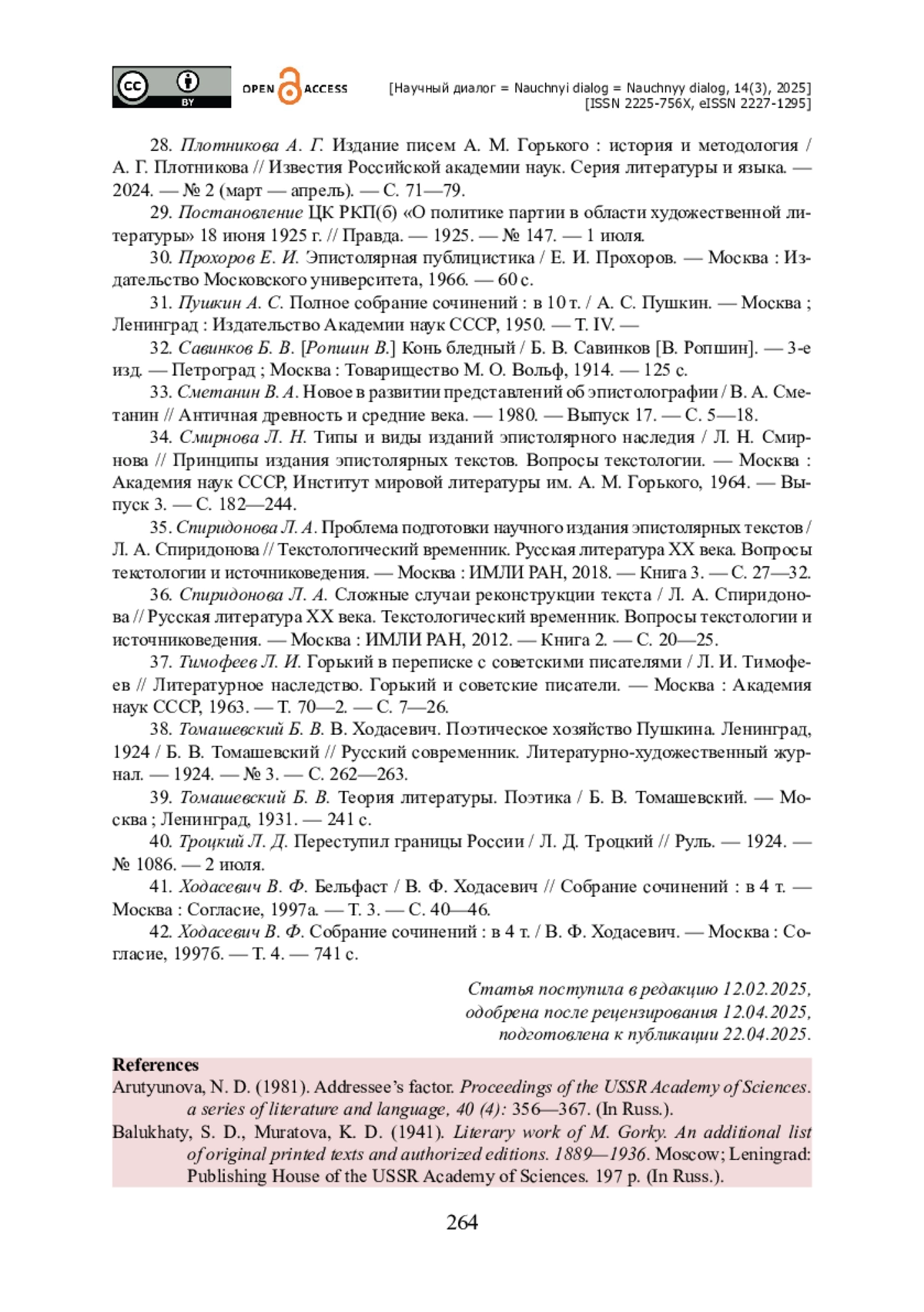 28. Плотникова А. Г. Издание писем А. М. Горького : история и методология / А. Г. Плотникова // Известия Российской академии наук. Серия литературы и языка. - 2024. - № 2 (март - апрель). - С. 71-79.